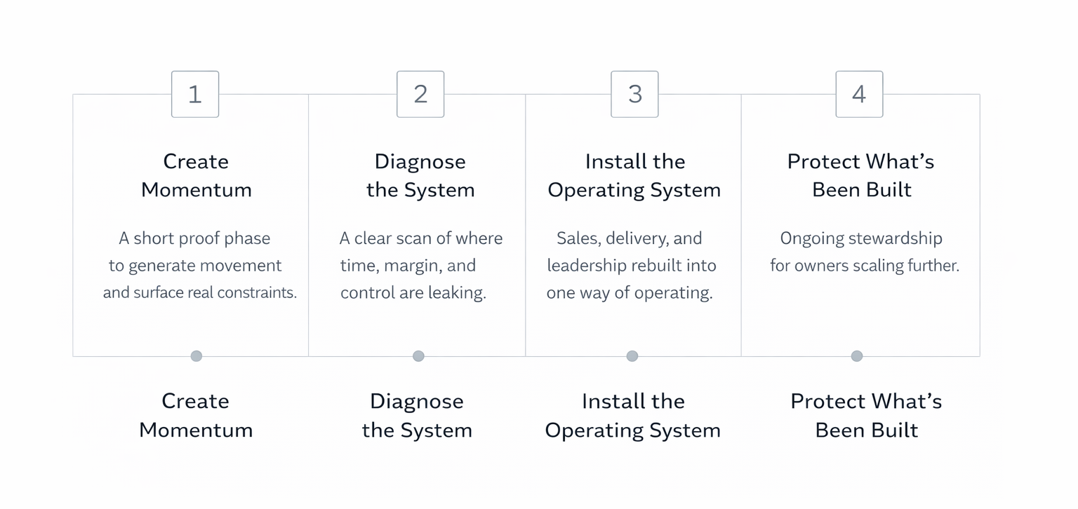 We install operating systems for construction, property, and other real-world businesses so they can scale without chaos, firefighting, or founder dependency.
